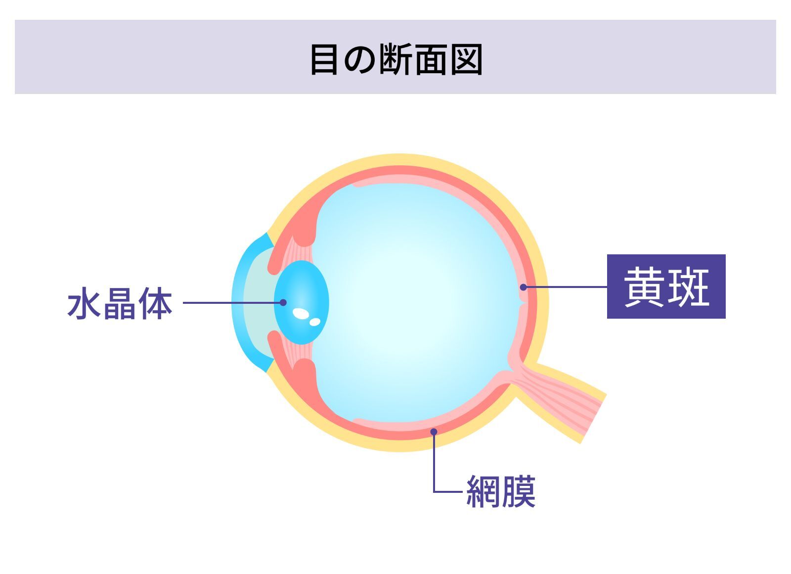 カメラでいうレンズにあたる"水晶体"に対してフィルムにあたるのが網膜ですが、黄斑部はフィルムのど真ん中の部分!