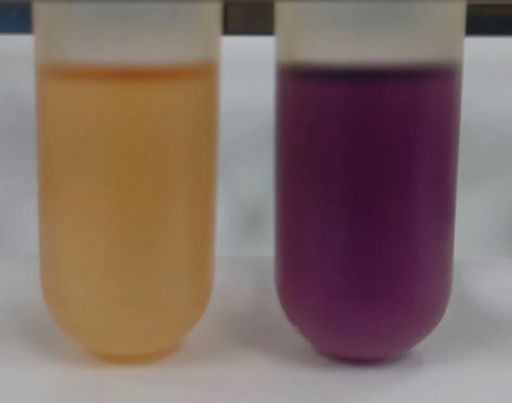 左にEyepaが入っており、抗酸化成分が反応して黄色になっています。